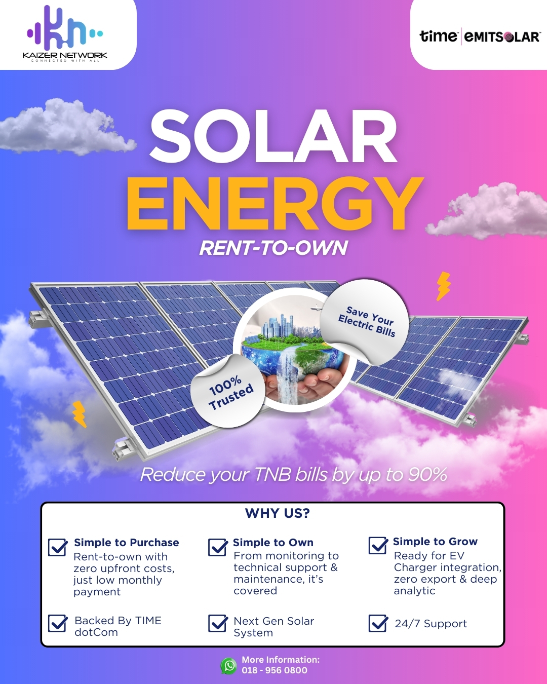 Kurangkan bil elektrik sehingga 50% dengan sistem solar rumah. Pendaftaran mudah, bayaran bulanan fleksibel & sokongan tenaga hijau.
